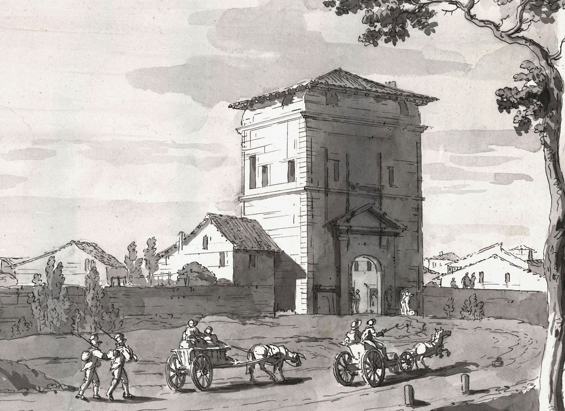 Sorge isolata dalle mura, sostituite ai suoi fianchi a fine ‘800 dai cancelli della barriera daziaria.
